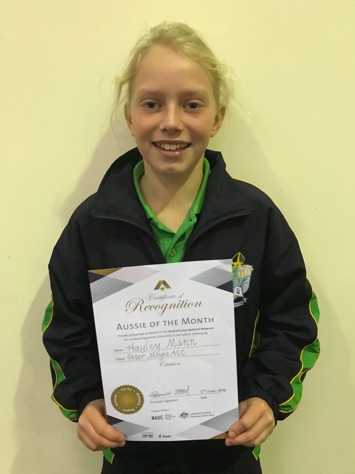 The Upper Primary Aussie of the Month Award goes to Hayley Mann.
