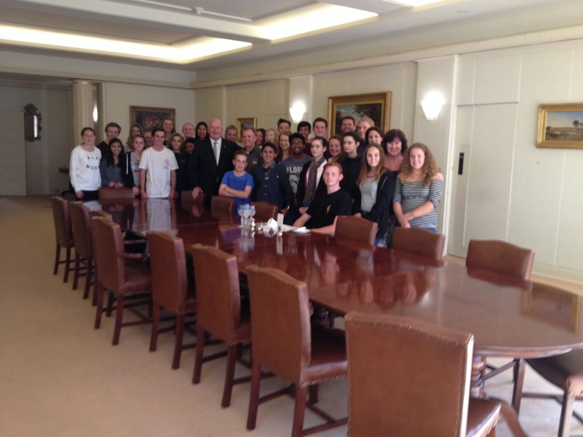 The students were exceptionally fortunate in having a chance encounter with the Governor-General, Sir Peter Cos-grove. Our meeting with His Excellency was not scheduled as part of our visit to his residence at Yarralumla; however, being in residence he willingly spent thirty minutes outlining his constitutional role and answering the students’ questions ranging from enquiries about his daily routine to his experiences in East Timor where he was in control of the United Nations peacekeeping operations.