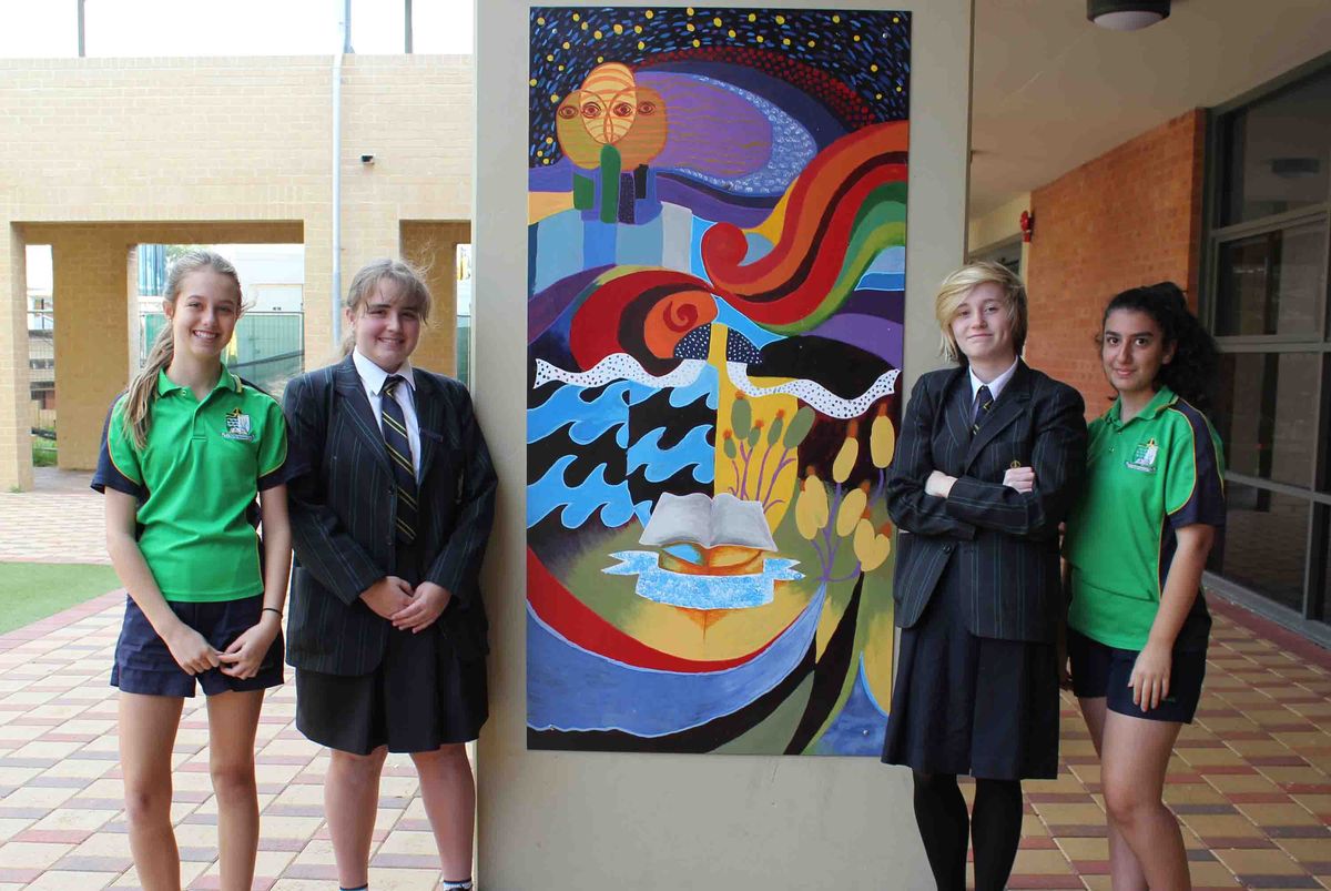 The Co-Curricular students who attended Visual Art with Mrs Burtnyk in Term Two have completed a striking abstract mural. It has been inspired by the five core school values: