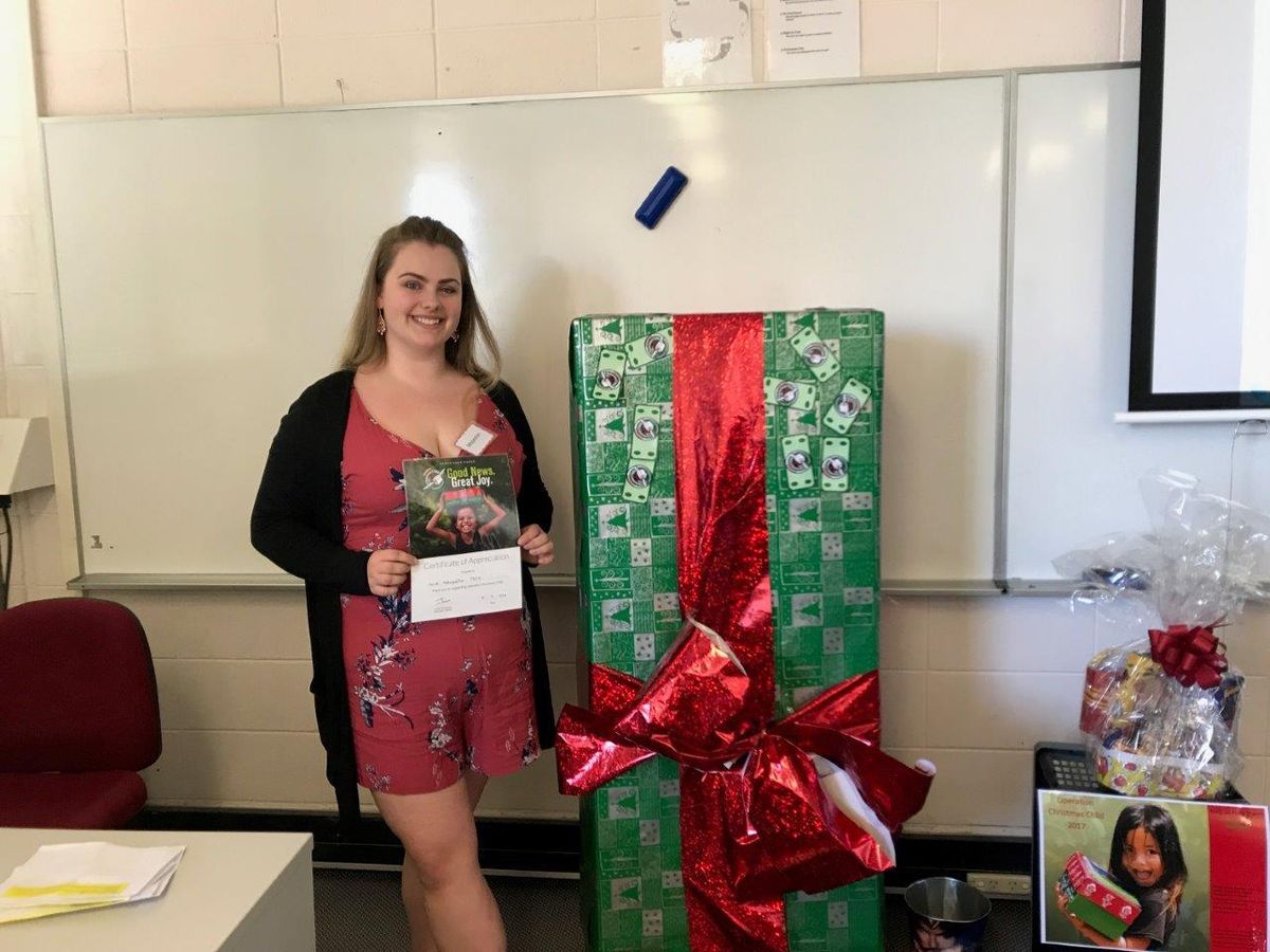 In order to assist Operation Christmas child, our class had to develop individual presentations to a group of people to inform them about the charity how they could help. The opportunity to help Operation Christmas child is a life changing experience. To know that we have helped 17 children in countries less fortunate than ours is an incredible achievement. I have always been a person who loves getting involved and helping people in need, so this was just an experience I will never forget and I feel so privileged to have been a part of being able to help.