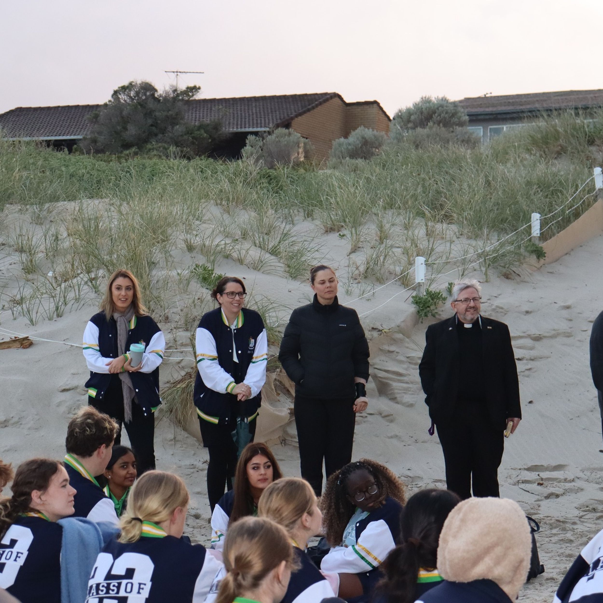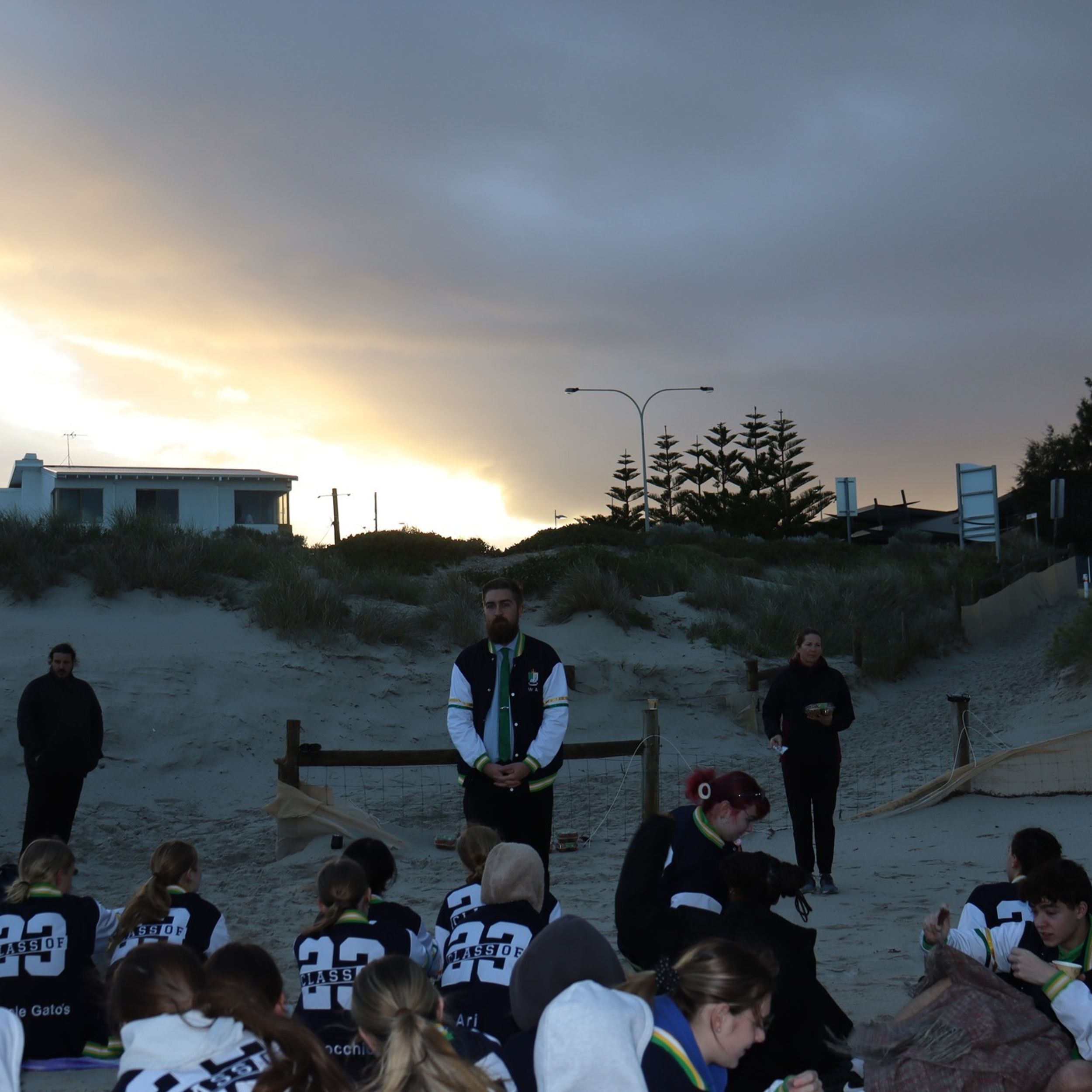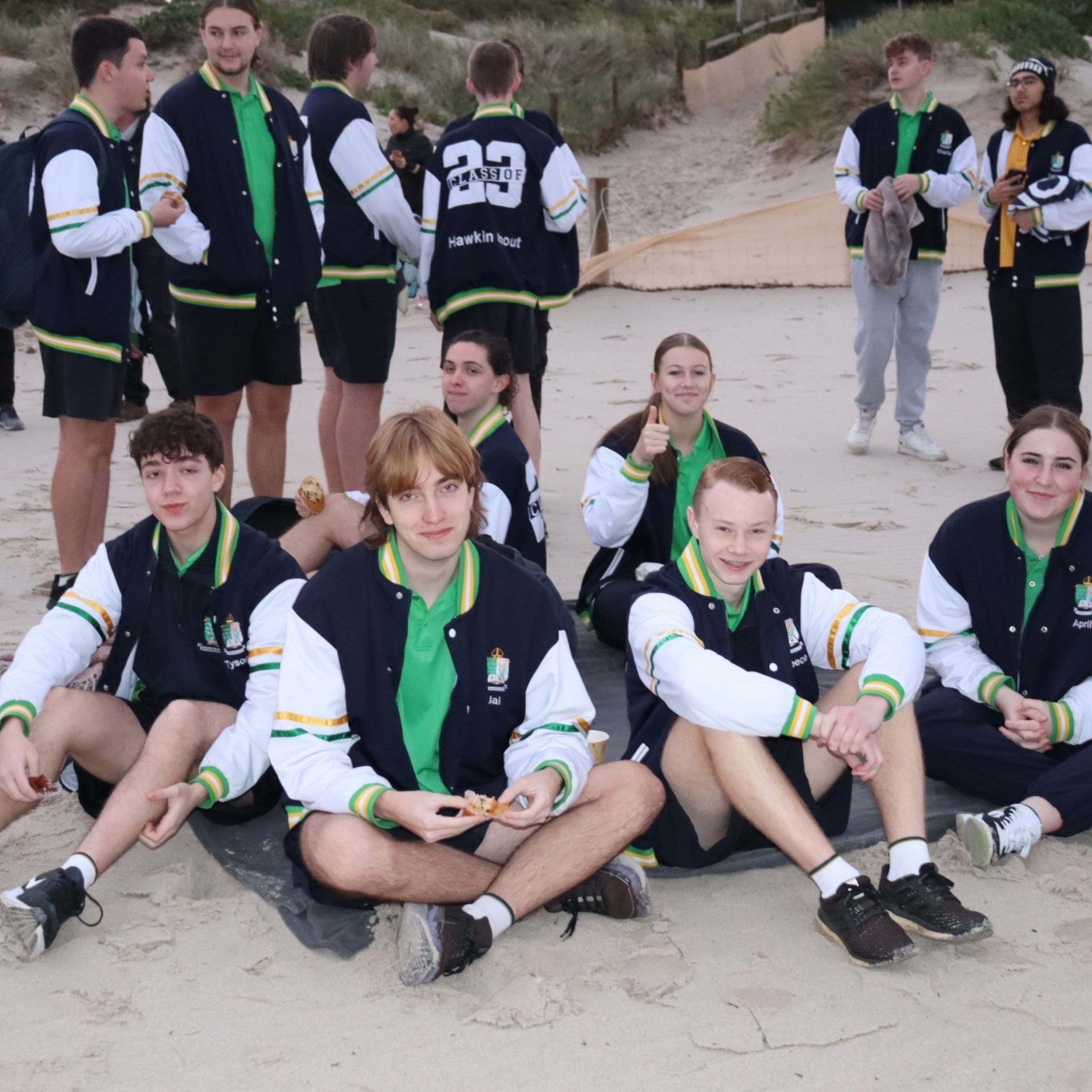 As our Year 12’s head to towards the final term of their secondary education, they have participated in the first two of their farewell events. On Monday 12 June, Year 12 Students and their Tutors met at Quinns Beach for a sunrise service. The weather fortunately held for brief reflective session that was followed by muffins and hot chocolate. This is the second iteration of the event and one enjoyed by all. The Head of Year, Parish Priest and Principal all said a few words; however the focus of the event was a chance for students to reconnect after exams and reset for their last few weeks of school. More recently, Year 12’s participated in a tree planting ceremony, with each house planting a tree on the edge of the North Oval. This is the 17th year that the Year 12 cohort has participated in a tree planting ceremony, an event that provides departing students a tangible and practical way to leave their mark on our school.